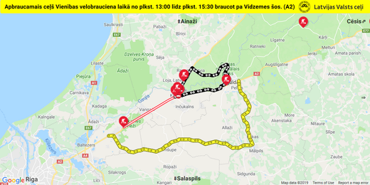Autobraucēju ievērībai: svētdien no 13:00 līdz 15:30 būs slēgti posmi uz Vidzemes un Valmieras šosejām no Sēnītes līdz Siguldai un Raganai