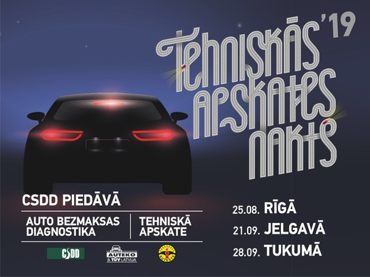 CSDD rīkotās Tehniskās apskates naktis šogad būs Rīgā, Jelgavā un Tukumā