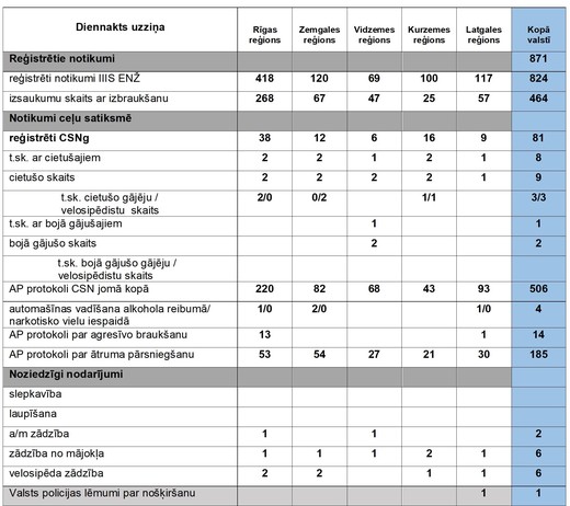 Pagājušajā diennaktī valstī reģistrēts 81 ceļu satiksmes negadījums, tajos cietuši 9 cilvēki un 2 gājuši bojā (+ TABULA)