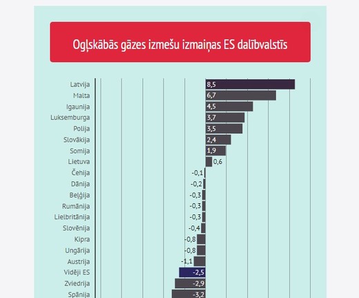 "Eurostat": Latvijā pērn bijis straujākais oglekļa dioksīda izmešu kāpums ES