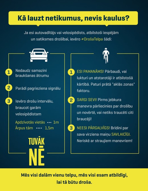 Kā autovadītājiem un velosipēdistiem droši apbraukt vienam otru ceļu satiksmē?