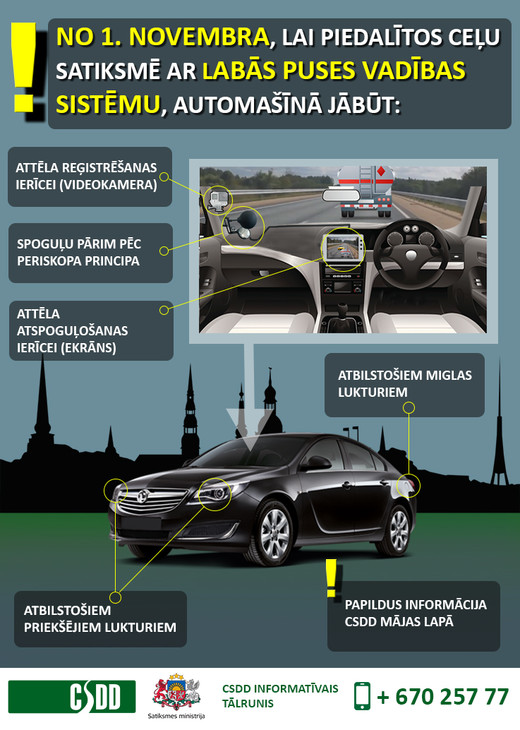 Ar šodienu var reģistrēt automobiļus ar vadību labajā pusē ekspluatācijai Latvijā