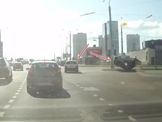 Vadītāja brauc pie sarkanā, uzmet kūleni un vaino Mercedes šoferi (+ VIDEO)