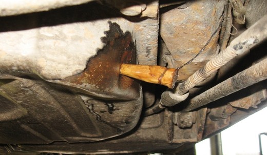 Baisā realitāte uz ceļa: ar koka tapām aizdarināta bāka, ielūzusi balstiekārta un pilnībā nodilušas riepas (+ FOTO)