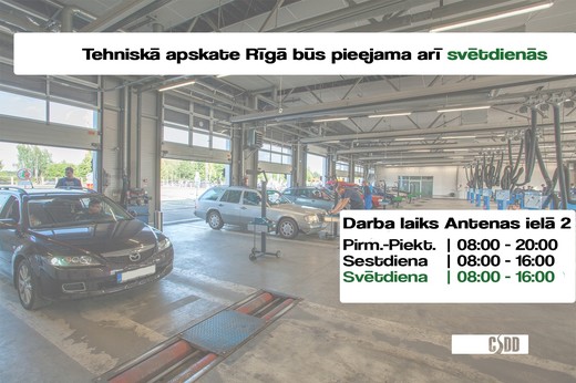 Tehniskā apskate Rīgā būs pieejama arī svētdienās