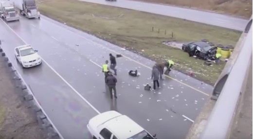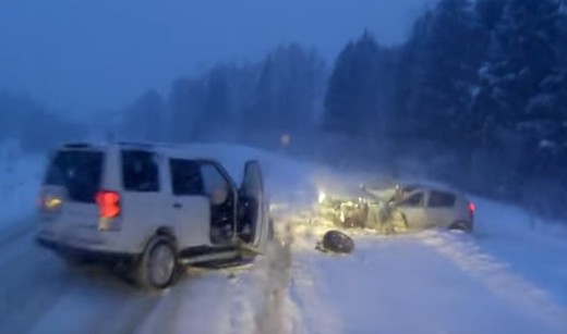 Krievijā avarē gaļas furgons un... tantiņas to izmanto (+ VIDEO)