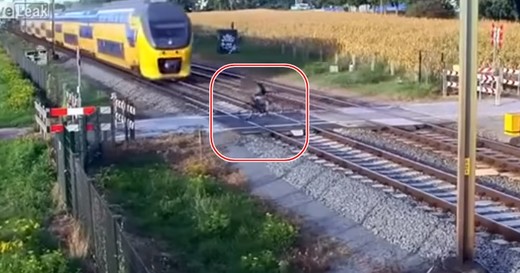 Par mata tiesu no nāves - velosipēdists nepamana vilcienu (+ VIDEO)