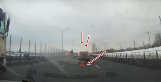 Par tuvu izlikta avārijas zīme neglābj no avārijas (+ video)