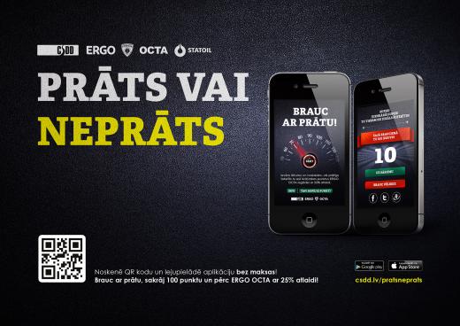 Ceļu satiksmes drošības direkcijas (CSDD) kampaņas „Brauc ar prātu. Paliec dzīvs!” ietvaros ar apdrošināšanas sabiedrības ERGO atbalstu izveidota jauna bezmaksas mobilā aplikācija „Prāts Neprāts”. Ar tās palīdzību ikviens autovadītājs var noteikt savu braukšanas stilu – vai tas ir drošs, mierīgs, agresīvs, pārgalvīgs vai bīstams, apdraudot sevi un apkārtējos.