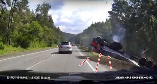 Laikam jau citu variantu apstādināt piekrauto kravas mašīnu nebija, jo ceļa slīpums tikai palielinājās. Komentārā rakstīts, ka mašīnai pazudušas bremzes, kā arī piebilsts, ka šoferis avārijā tikpat kā neesot cietis (skatīt no 0:25).