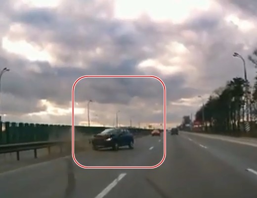 Pa kreiso malējo joslu braucošais Peugeot ir pamatīgi ieskrējies, taču franču mazauto viss beidzas, kad priekšā braucošais Porsche nedaudz piebremzē (no 0:15).