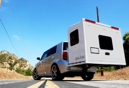 Parasti tādam nolūkam kalpo lielāki vai mazāki treileri (kemperi), taču tas saistīts ar zināmām neērtībām – lielāks svars, sarežģītāka manevrēšana utt. Alternatīva ir kompaktāki risinājumi, piemēram, ASV kompānijas Hitch Hotel izstrādātais „piekarināmais hotelis”, kas maksā tikai 3500 dolāru (aptuveni 3000 eiro). Šādas naktsmājas, kas izgatavotas no alumīnija un oglekļa šķiedras diegiem pastiprināta sintētiskā materiāla, sver tikai 110 km un ir piestiprināmas uz automašīnas piekabes āķa. Atpūtas brīžos šādu „kasti” izvelk garumā un 224x147 cm izmēru guļamtelpa ar 1700 litru ietilpību ir jūsu rīcībā. No komforta risinājumiem pieejams iebūvēts logs gaismai un svaigam gaisam, lampa telpas izgaismošanai un USB pieslēgvieta dažādām ierīcēm.