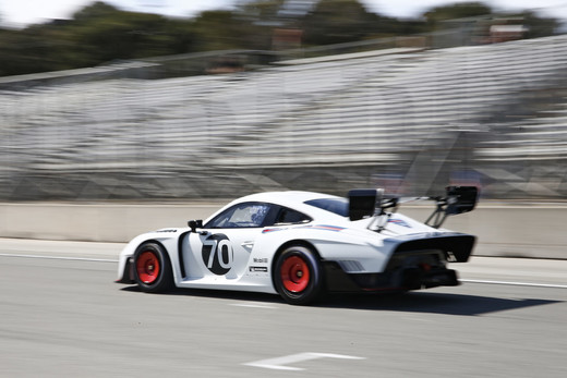 Daudzas ārējās detaļas atgādina par uzvarētājiem no uzņēmuma autosacīkšu vēstures: aerodinamiski noapaļoto disku prototips ir 935/78, savukārt LED aizmugurējās gaismas aizmugures spārna galu plātnēs ir aizgūtas no sacīkšu automobiļa 919 Hybrid LMP1. Sānu spoguļi ir cēlušies no pašreizējā Lemānas uzvarētāja 911 RSR, bet atklātajiem titāna izpūtējiem par paraugu ir ņemts 1968. gada Porsche 908.