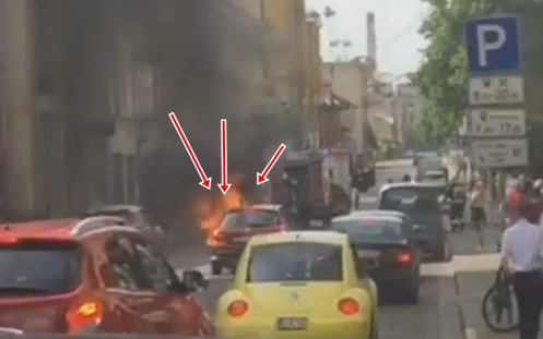 Šodien Rīgā, Dzirnavu ielā, aizdegusies ar gāzes iekārtu aprīkota BMW 3.sērijas automašīna.