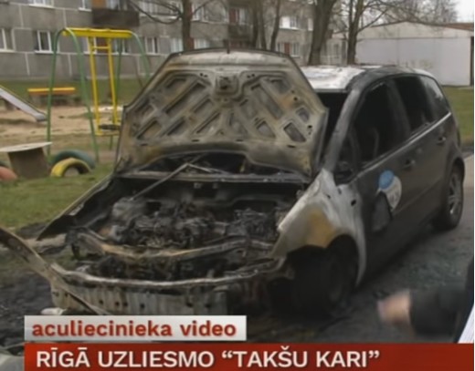 Jau vairākkārt vēstīts par saspīlētām situācijām, ko izraisa taksometru vadītāju cīņa par klientiem pie Rīgas lidostas. Konfliktam ejot plašumā, taksisti savus rēķinus kārto ne tikai lidostas priekšā, bet arī citur pilsētā. Naktī uz ceturtdienu divas automašīnas degušas Ķengaragā. Taču “takšu karos” cieš arī pilnīgi neiesaistīti cilvēki.