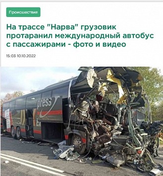 Autobuss no Sanktpēterburgas autoostas devās uz Rīgu. Autobuss sadūrās ar kravas automašīnu, un, spriežot pēc sākotnējās informācijas, negadījuma izraisītājs bijusi kravas automašīna.