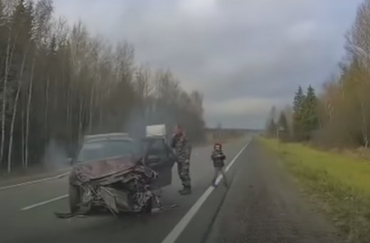 Vadītājs nespēj savaldīt savu spēkratu pēc tam, kad pieļauj piekabes sašūpošanos. Avārijā iesaistīti divi transporlīdzekļi, bet kravas auto izvairās no sadursmes nobraucot no ceļa.
