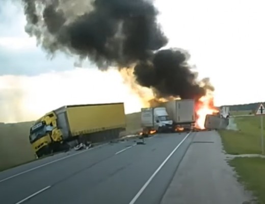 Mazā kravas furgona vadītājs cenšas apdzīt vairāku kravinieku kolonnu vienā paņēmienā. Tas neizdodas - notiek vairāku transportlīdzekļu sadursme un bīstamā manevra veicējs mirst notikuma vietā.