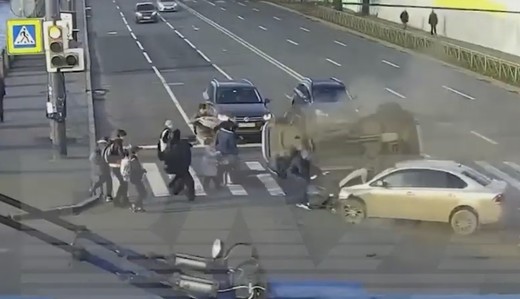 Septiņi cilvēki Santktpēterburgā cieš divu auto sadursmē uz gājēju pārejas tikai brīnumainā kārtā iztiekot bez smagām traumām.