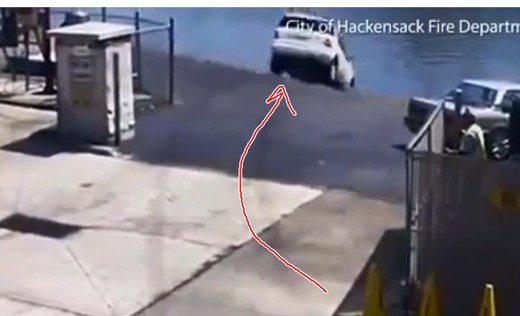 Autovadītāja izstūrē savu mašīnu no automazgātavas, piepeši strauji paātrinās un iegāžas upē.