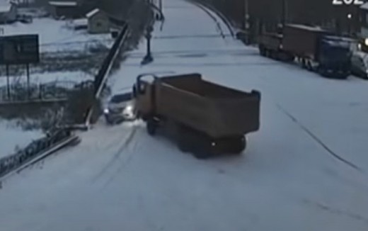 Kravas auto šoferis nav gatavs tam, ka ceļs krustojumā būs tik slidens un, lai arī vieglās automašīnas vadītājs cenšas piespiesties pie malas, cik spēj, sadursme tomēr notiek.