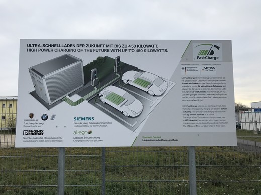 2016. gada jūlijā aizsāktais pētniecības projekts „FastCharge” ir saņēmis 7,8 miljonu eiro finansējumu no Vācijas Federālās transporta un digitālās infrastruktūras ministrijas. Finansējuma pamatnostādņu īstenošanu koordinē Vācijas Nacionālā ūdeņraža un degvielas elementu tehnoloģiju organizācija (NOW). Rūpnieciskajā konsorcijā ietilpst automobiļu ražotāji BMW Group un Dr. Ing. h. c. F. Porsche AG, kā arī operatori Allego GmbH, Phoenix Contact E-Mobility GmbH (uzlādes tehnoloģija) un Siemens AG (elektrotehnika).