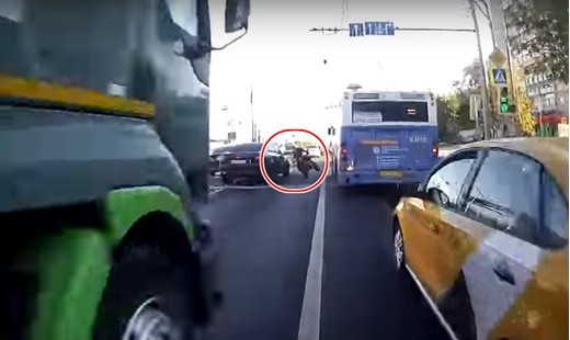 Tas bija bīstami un tas ir bīstami - motociklists gandrīz pakļūst zem autobusa riteņiem (+ VIDEO)