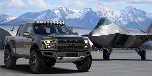 ASV autobūves kompānija izlaidusi īpašu jaudīgā pikapa F-150 Raptor modifikāciju, kas tapusi vienā eksemplārā un veltīta aviācijas iznīcinātājam Lockheed F-22 Raptor.