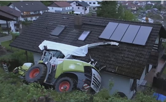 Lauksaimniecības tehnika noslīdējusi pa nogāzi vairāk nekā 40 metrus un uzgāzusies zemāk uzbūvētajai mājai. Glābējiem vajadzēja piecas dienas, lai likvidētu avāriju.