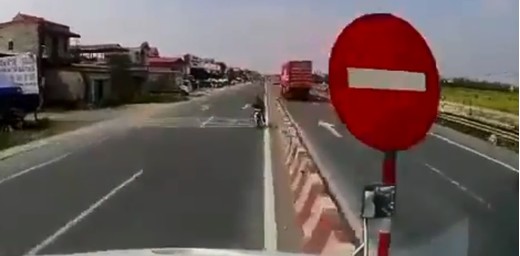 Kravas auto šoferis izdara tobrīd veiksmīgāko izvēli, līdz ar to bīstamā situācija beidzas bez sadursmes un materiāliem zaudējumiem