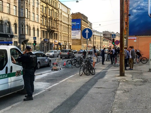 Piektdienas pievakarē pāris desmiti velosipēdisti bloķēja iepriekšējā naktī patvaļīgi uzkrāsotās velojoslas Brīvības ielā, lai nepieļautu to likvidēšanu. Notikuma vietā ieradās septiņas policijas ekipāžas, tostarp specvienība.