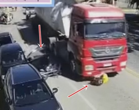 Autovadītāja atver durvis tieši tobrīd, kad no aizmugures tuvojas mopēdists. Vīrietis atsitas pret atvērtajām durvīm un pakrīt zem kravas auto, laimīgā kārtā iztiekot bez smagām traumām.