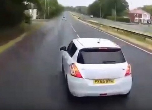 Vieglais apdzen kravas auto un uzreiz nobremzē (+ VIDEO)