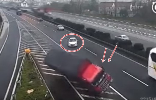 Vieglais auto pabrauc garām nobrauktuvei un izraisa divu kravinieku avāriju (+ VIDEO)