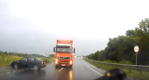 Vieglā auto vadītājs kļūdās un nedaudz nokavē iegriešanos sānceļā, viņa mašīnai ceļu aizšķērso barjera, bet pretimbraucošajam kraviniekam vairs īsti nav kur palikt.