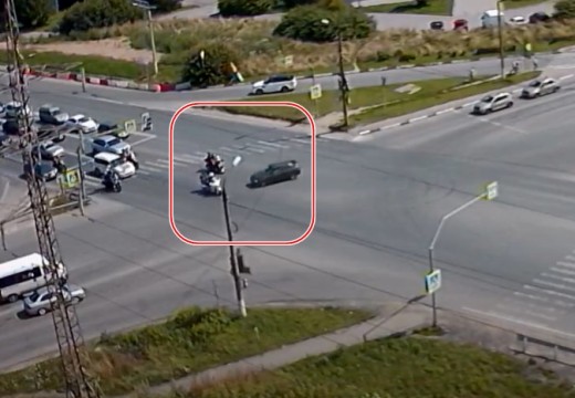 Motocikla un automašīnas sadursme (0:30).