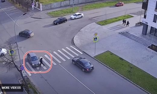 Viņš, viņa neskatās - mašīna notriec gājēju uz pārejas (+ VIDEO)