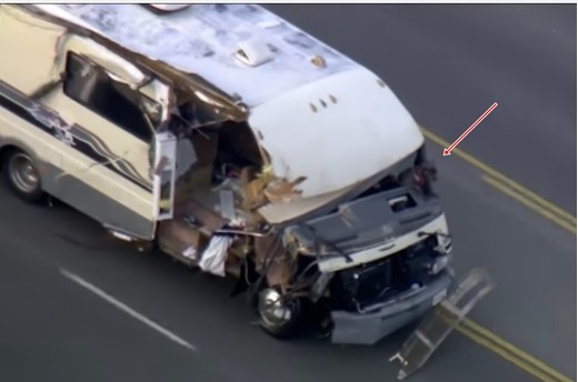 Video no ASV: sieviete ar nozagtu "Motorhome" bēg no policijas un neapstājas arī pēc vairākām avārijām un busiņa ietriekšanās palmā, kas izārda transportlīdzekļa priekšējo daļu un sānus.