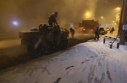Laimīgā kārtā tā tomēr nav medijos teju vai katru dienu pieminētā Barona iela Rīgā, bet gan kāds Krievijas Tālo Austrumu pilsētas Vladivostokas ielas posms, kur asfaltēšanas darbi notiek spēcīga sniegputeņa laikā.