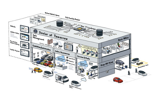 Volkswagen un Eiropas auto tirgotāju padome Berlīnē prezentēja savu vīziju par Volkswagen 5 400 auto dīleru un servisa partneru, kā arī to 54 000 Eiropas darbinieku nākotni. Mērķis ir nodrošināt nevainojamu un nepārtrauktu individuālo atbalstu klientiem, kas sniedzas krietni tālāk par automašīnu tirdzniecību, balstoties uz unikālo Volkswagen klientu ID.
