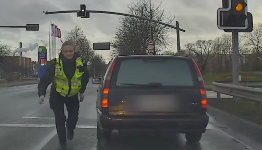 Vīrietis, būdams alkohola reibumā, bēg no policijas un iestūrē sienā (+ VIDEO)