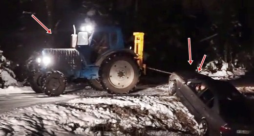 Baļķus tā var vilkt, bet mašīnu - labāk nevajag (+ video)
