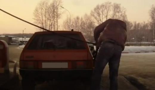 Tā vietā, lai pareizi brauktu ar automobili pie uzpildes stacijas, vadītājs nolemj to pārcelt tuvāk paša spēkiem. Interesanti, kā auto īpašniekam veiktos ar nedaudz lielāku spēkratu?