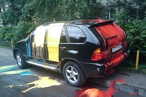 Cita lieta, ja uz automobiļa jumta uzlieti vairāki spaiņi dažādu jrāsu lipīgas un biezas eļļas krāsas. Te remonts varētu pārsniegt pašas automašīnas vērtību!