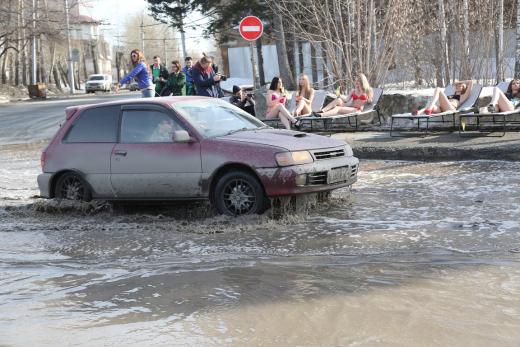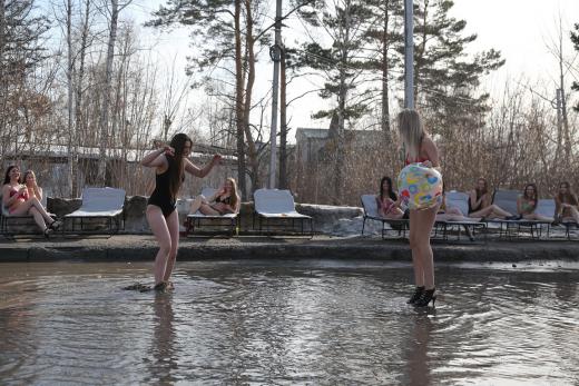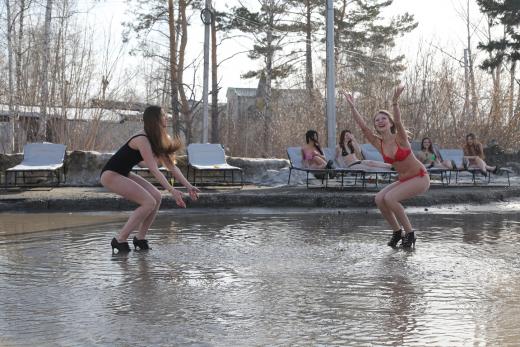 Meitenes peldkostīmos Krievijā cīnās pret bedrēm (+ foto)