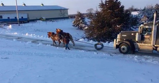 Uz kāda no lauku ceļiem Minnesotas (ASV) štatā kravas auto nespēj uzbraukt pa apledojušu ceļu, taču talkā nāk izpalīdzīgs saimnieks ar Beļģijas šķirnes zirgiem un atrisina situāciju.