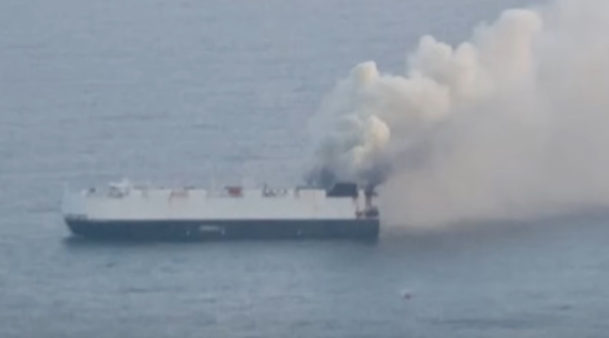 Kuģis, kas pārvadāja 800 elektroautomobiļus, tiek pamests sadegšanai