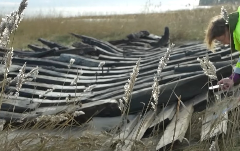 Mērsragā vētras laikā izskalots koka kuģa vraks (+ VIDEO)