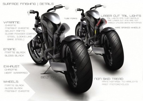 Turklāt dizainers atzīst, ka idejas pasmēlies arī datorklasikas Apple produkcijas klāstā. Aizmugures bremžu signāli mirgo gluži kā Apple MacBook gaismas diodes, savukārt motocikla korpuss atgādina Apple klēpjdatoru alumīniju.