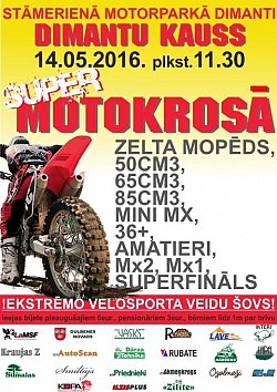 Sīvas cīņas aizvadīs visas - 65cm3, 85cm3, 36+, amatieru, MINI MX, MX2, MX1 - klases, bet superfinālā tiksies tikai 15 labākie MX1 un MX2 klašu sportisti, noslēdzošajā 15 minūšu braucienā cīnoties par galveno balvu– Dimantu kausu.